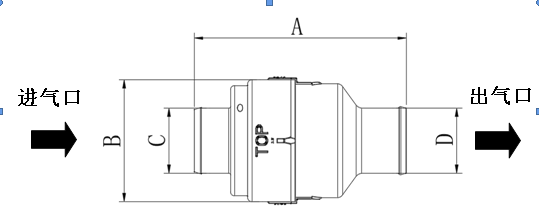 2、單向閥上標(biāo)有“TOP”標(biāo)識(shí)的需要朝上,進(jìn)氣口連接空濾前段旋流管排塵口,出氣口標(biāo)有氣流方向的箭頭,此端需安裝在連接尾氣管的一邊;