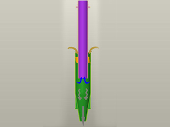當(dāng)含塵氣體由進(jìn)氣口以一定的速度進(jìn)入旋流管,經(jīng)過固定葉片后,形成旋轉(zhuǎn)運(yùn)動,氣流在期間形成一股向由外往內(nèi)的外旋流;